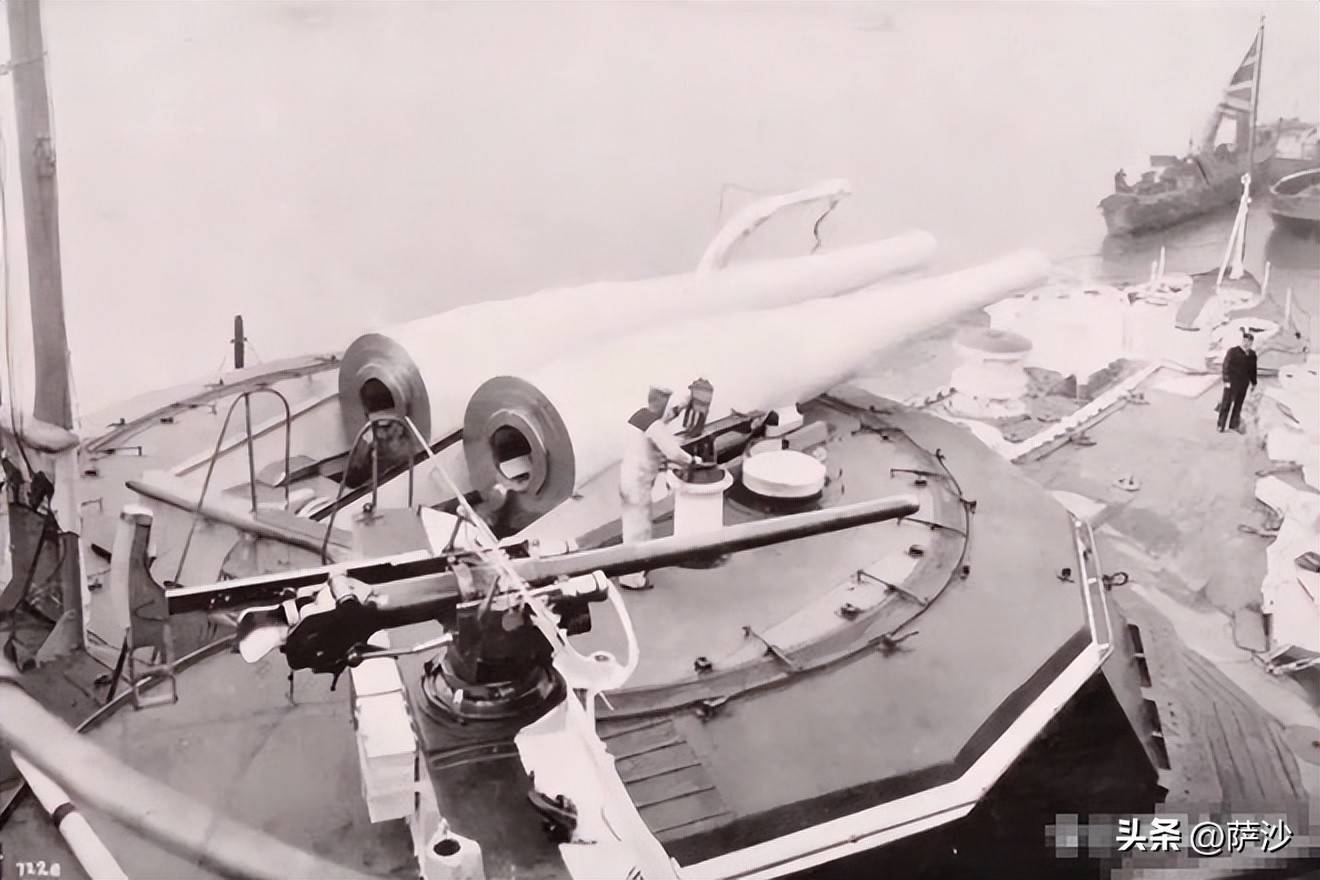 以英国同时代的君权级铁甲舰为例,只在军舰首尾各部署1座主炮塔,同时在军舰两侧配属高达10门的152毫米速射炮。